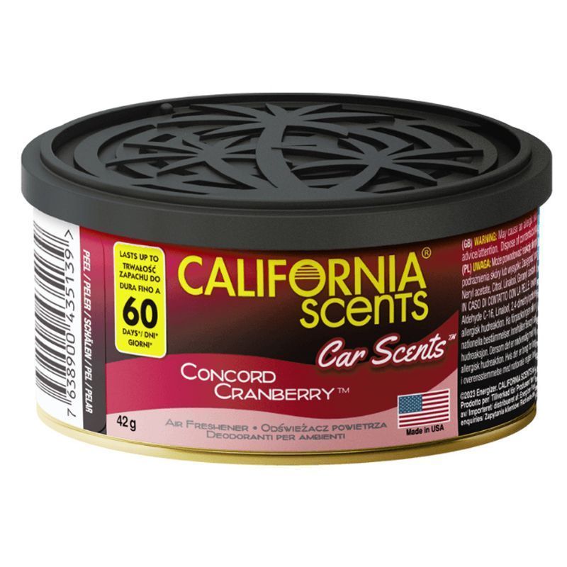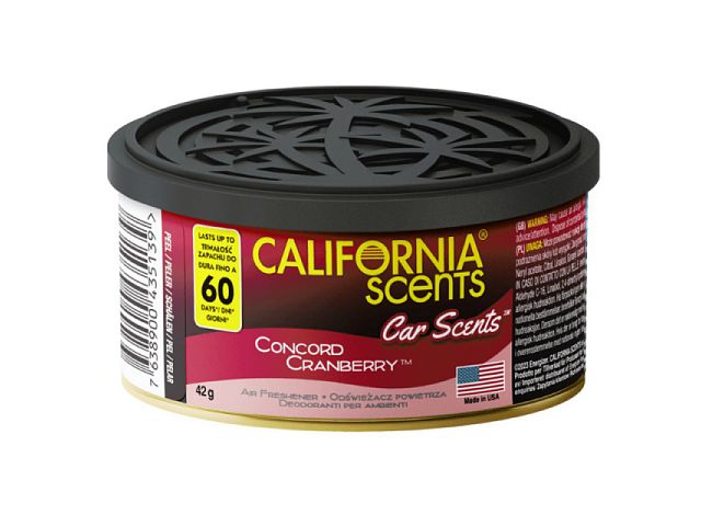Osvěžující vůně brusinek pěstovaných v okolí kalifornského města Concord. Provoní Vaše auto, byt i kancelář. Ovocná a dlouhotrvající vůně. Nechte se okouzlit jedinečnou a smyslnou vůní amerického výrobce California Scents.